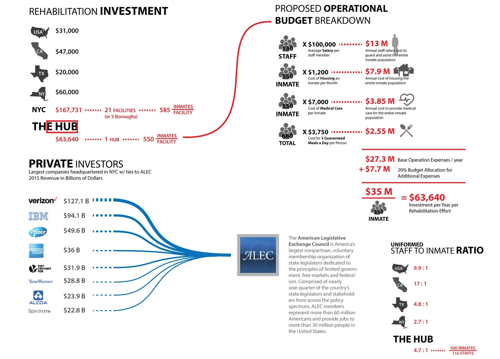 The research began by mapping the correctional network of New York State—its demographic patterns, facility distribution, and flows between incarceration, parole, and reentry. Data from the Department of Corrections and Community Supervision (DOCCS) revealed systemic disparities: overrepresentation of marginalized communities, high recidivism rates linked to educational inequity, and limited access to mental health care. These mappings reframed the prison not as an isolated object but as a node within broader social and economic systems.