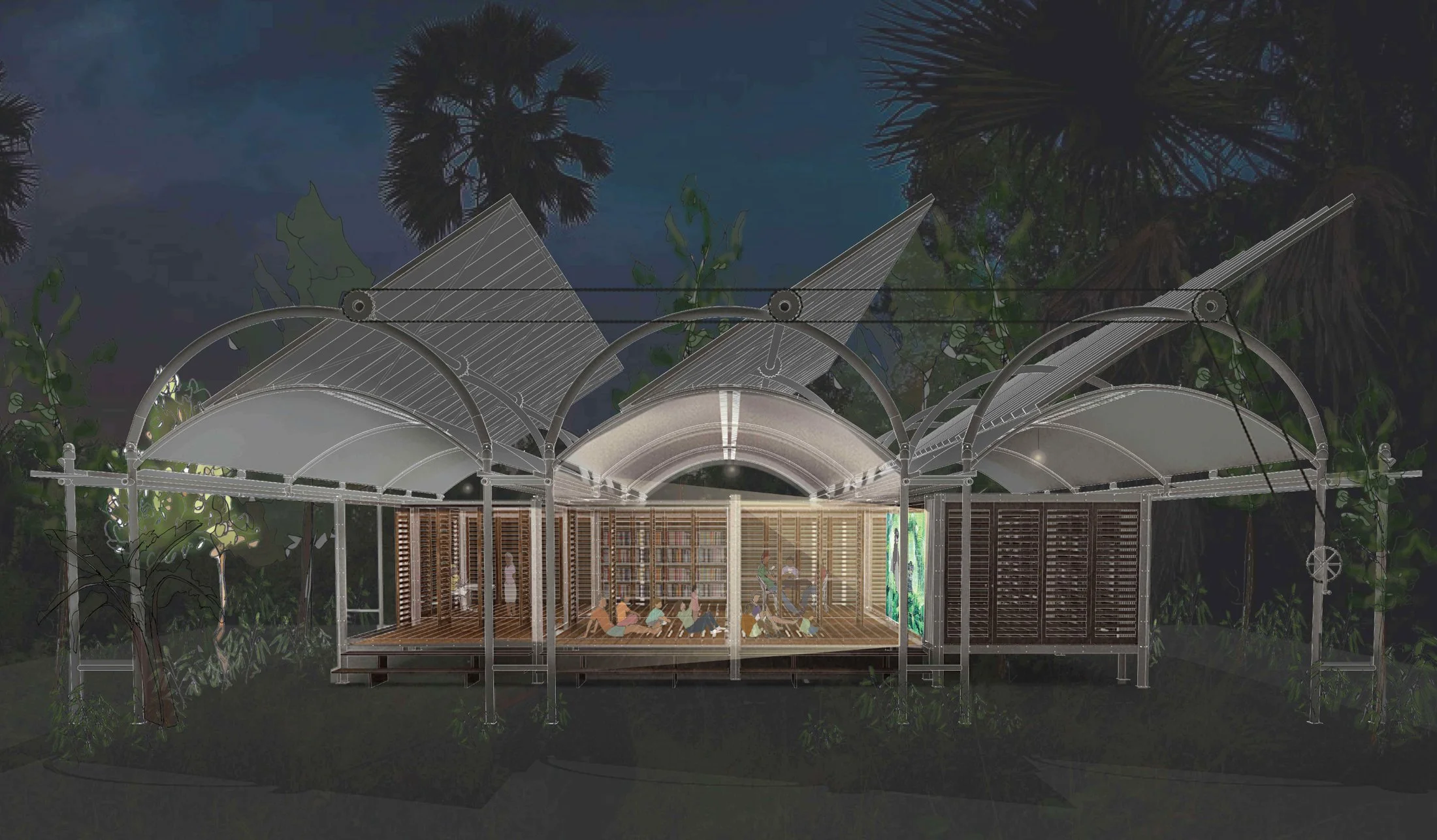 Phase 3 — Design Prototyping: Each student developed modular components optimised for rapid assembly and climatic performance. Examples include demountable bamboo canopies with reflective membranes, collapsible furniture that converts into classroom desks, and solar-powered light panels integrated into canopy ribs. Designs were tested for weight, airflow, acoustic absorption, and ease of cleaning. Field simulations measured how new layouts improved visibility and reduced congestion.
